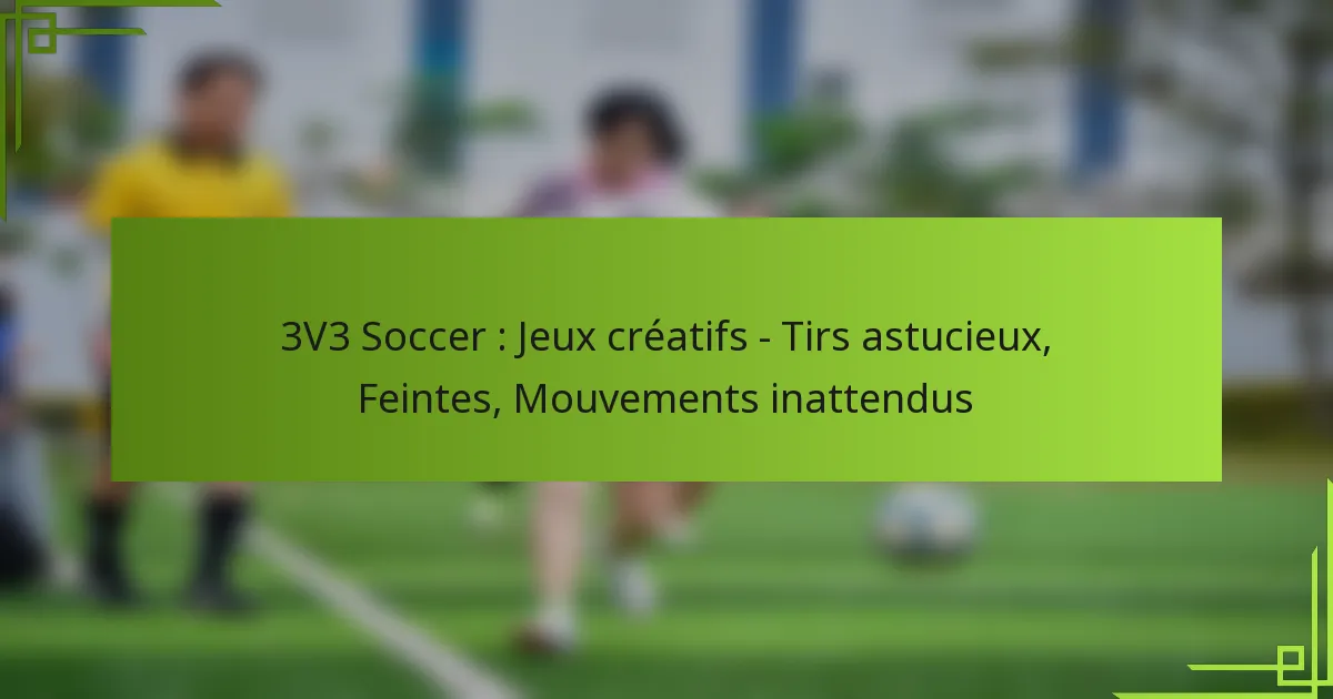 Les tirs astucieux efficaces dans le football 3V3 impliquent des techniques créatives qui surprennent les adversaires et améliorent les occasions de marquer. Maîtriser ces tirs nécessite de comprendre les mécanismes de base, de pratiquer des variations et d’appliquer des mouvements stratégiques pendant le jeu.