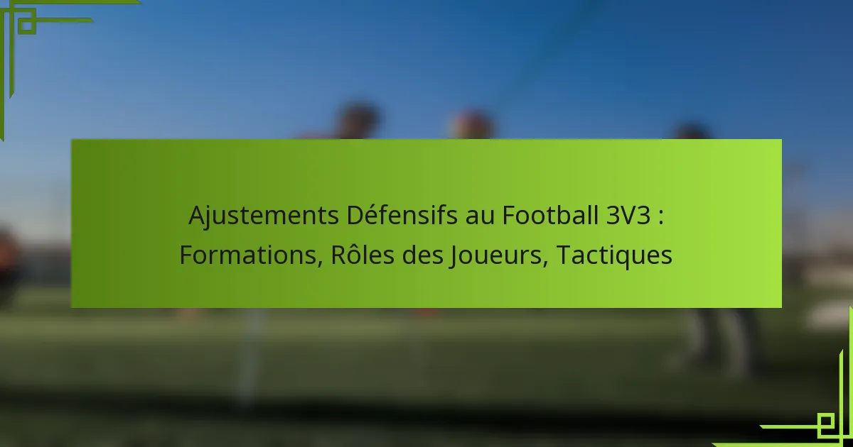 Dans le football 3v3, maîtriser les ajustements défensifs est essentiel pour le succès de l’équipe, car cela implique des formations stratégiques, des rôles de joueurs définis et des tactiques efficaces. L’utilisation de formations telles que les défenses plates ou en losange peut améliorer la structure et l’adaptabilité de l’équipe sur le terrain. La compréhension par chaque joueur de ses responsabilités spécifiques est vitale pour maintenir une défense solide et répondre aux mouvements des adversaires. En se concentrant sur le positionnement tactique et la communication, les équipes peuvent améliorer considérablement leur performance défensive et récupérer la possession plus efficacement.