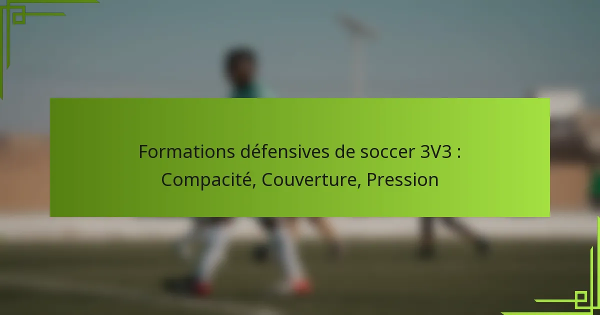 Dans le football 3v3, les formations défensives sont cruciales pour maintenir la compacité, la couverture et la pression sur l’équipe adverse. Les formations clés incluent le triangle plat, le losange et la boîte, chacune conçue pour améliorer la défense de l’équipe tout en s’adaptant à diverses situations de jeu.