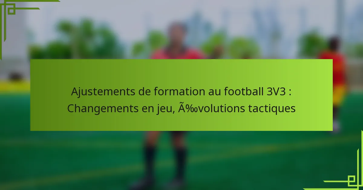 Dans le football 3v3, la capacité d’ajuster les formations en cours de jeu est essentielle pour optimiser la performance de l’équipe et répondre aux dynamiques évolutives d’un match. En utilisant diverses configurations tactiques telles que les formations en losange, en triangle ou à plat, les équipes peuvent s’adapter efficacement aux adversaires et tirer parti des opportunités émergentes. La flexibilité et la connaissance des forces des joueurs sont clés pour effectuer des ajustements réussis et éviter les pièges courants qui peuvent entraver l’efficacité d’une équipe sur le terrain.