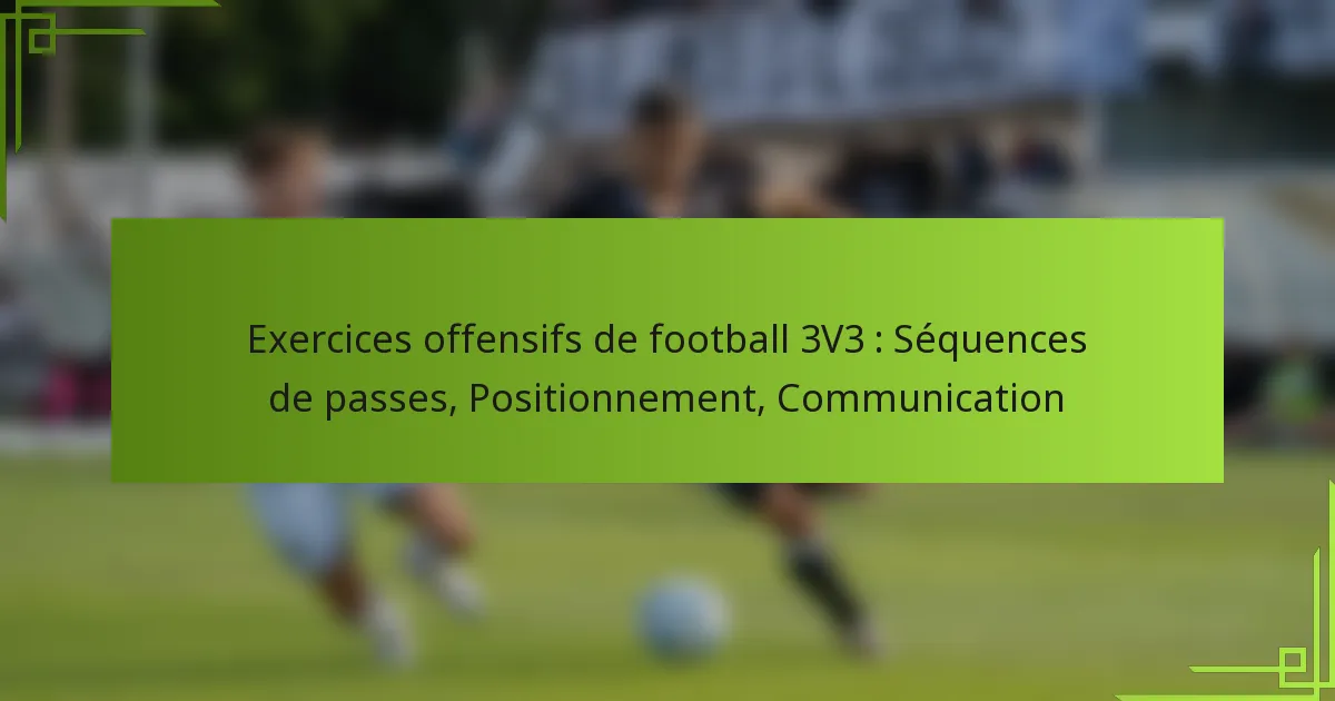 Dans le football 3V3, maîtriser les exercices offensifs axés sur les séquences de passes, le positionnement et la communication est vital pour réussir. Des séquences de passes efficaces permettent aux équipes de conserver la possession et de créer des occasions de marquer grâce à des mouvements coordonnés. Un bon positionnement améliore l’efficacité offensive en créant de l’espace et en facilitant le travail d’équipe, tandis qu’une communication claire minimise les malentendus et améliore la coordination globale sur le terrain.