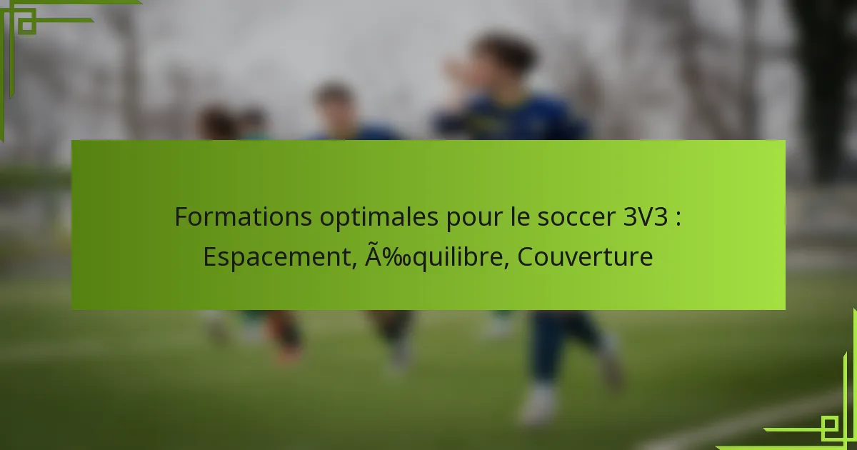 Dans le football 3v3, les formations optimales sont essentielles pour maximiser la performance de l’équipe grâce à un espacement, un équilibre et une couverture efficaces. Des configurations courantes comme le 1-1-1, le 2-1 et le 1-2 présentent chacune des avantages et des défis distincts, adaptés aux compétences des joueurs et à la dynamique du jeu. Un espacement approprié améliore non seulement la performance des joueurs, mais favorise également de meilleures opportunités de passes et une couverture du terrain, tandis qu’un équilibre atteint garantit une approche coordonnée tant en attaque qu’en défense.