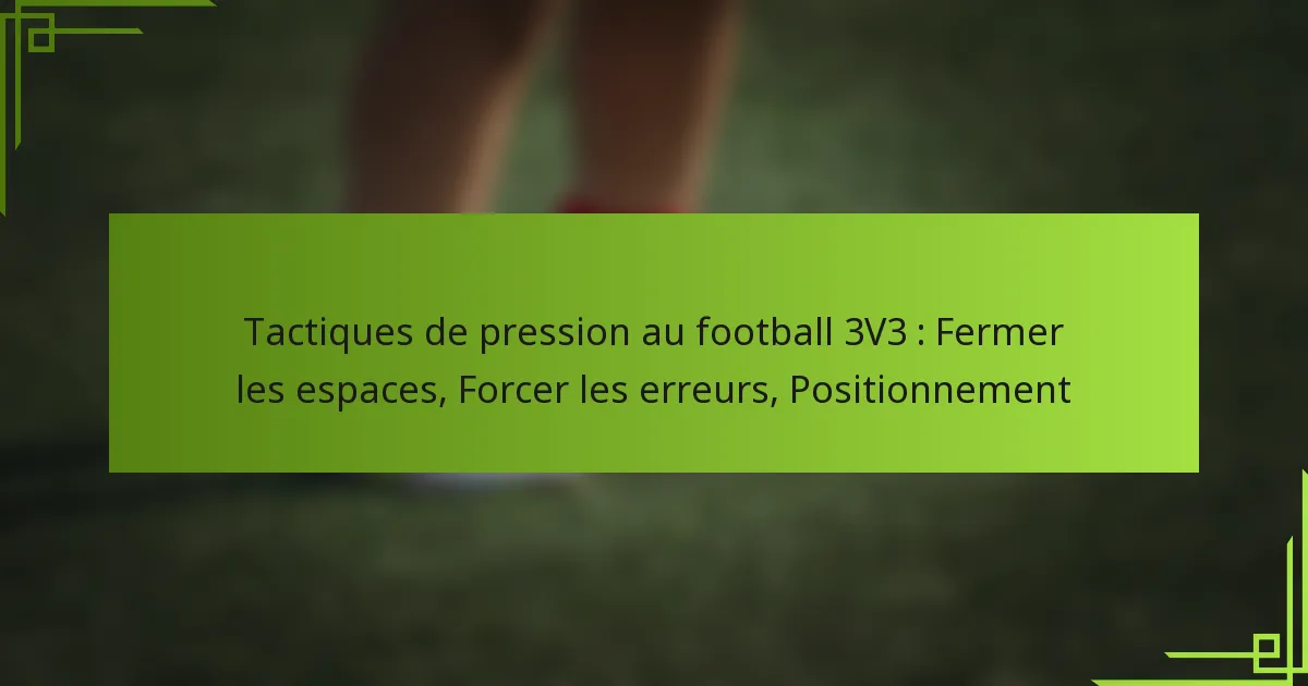 Quelles sont les principales tactiques de pression dans le football 3v3 ?