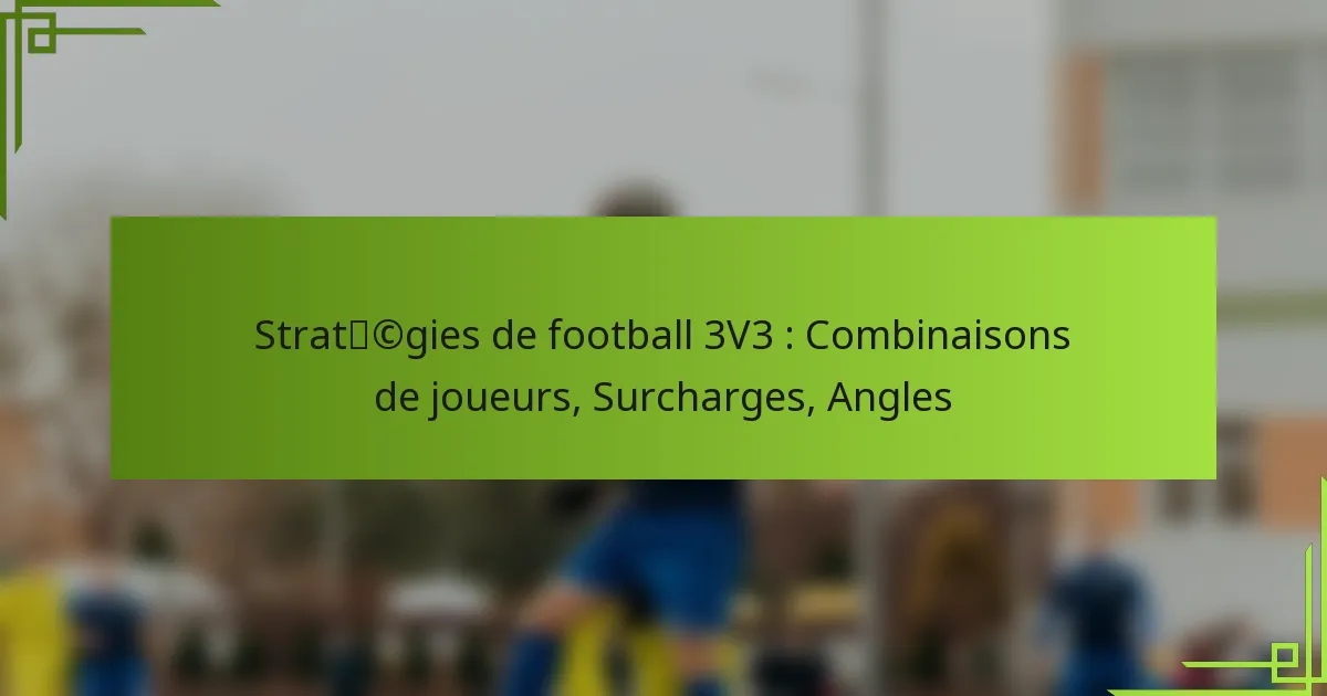 Dans le football 3v3, des stratégies efficaces reposent sur les combinaisons de joueurs, les surcharges et les angles. En associant stratégiquement les joueurs en fonction de leurs forces, les équipes peuvent améliorer leur performance et créer des opportunités de marquer. L’utilisation de surcharges permet aux équipes de surpasser leurs adversaires dans des zones clés, tandis qu’une bonne compréhension des angles facilite de meilleures passes et un meilleur positionnement, maximisant l’espace sur le terrain.