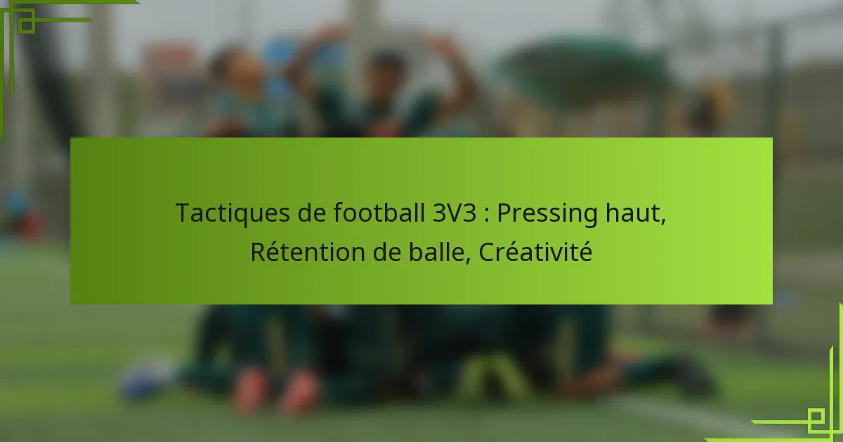 Les tactiques clés dans le football 3v3 incluent le pressing haut, la conservation du ballon et la créativité. Ces stratégies améliorent les performances de l’équipe en favorisant une défense agressive, en maintenant la possession et en encourageant un jeu innovant.